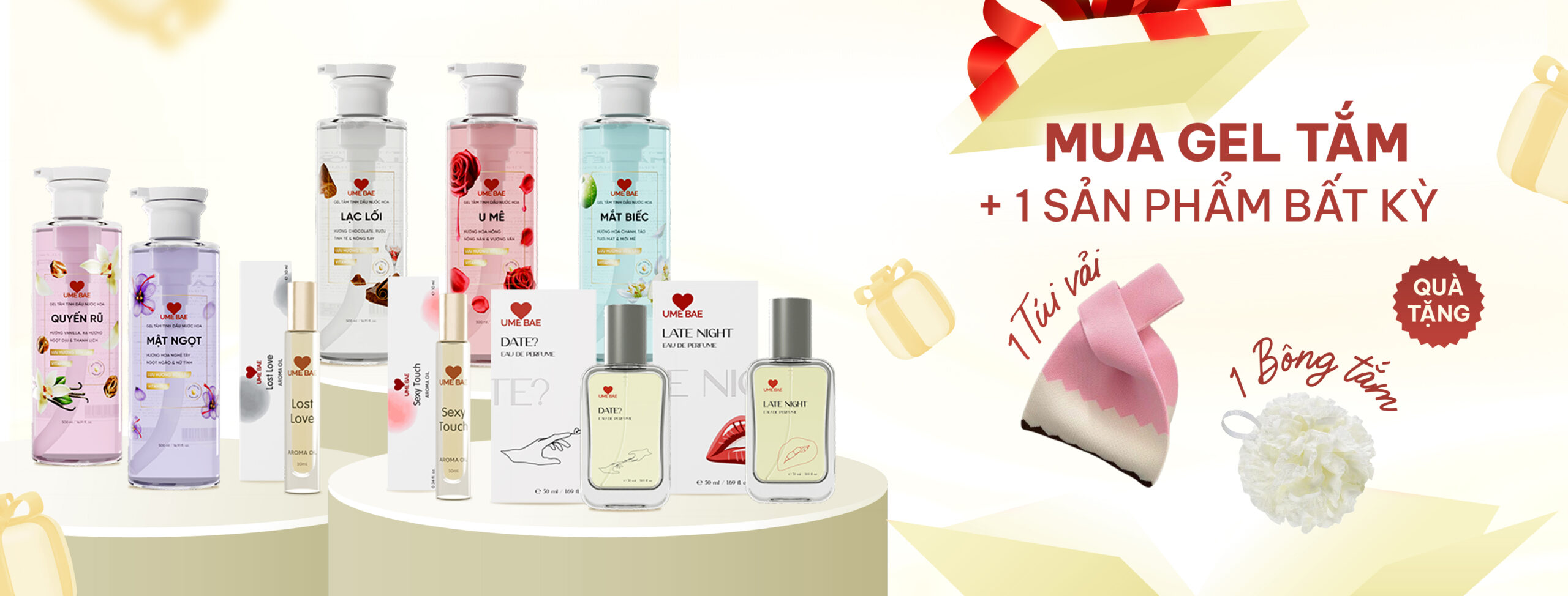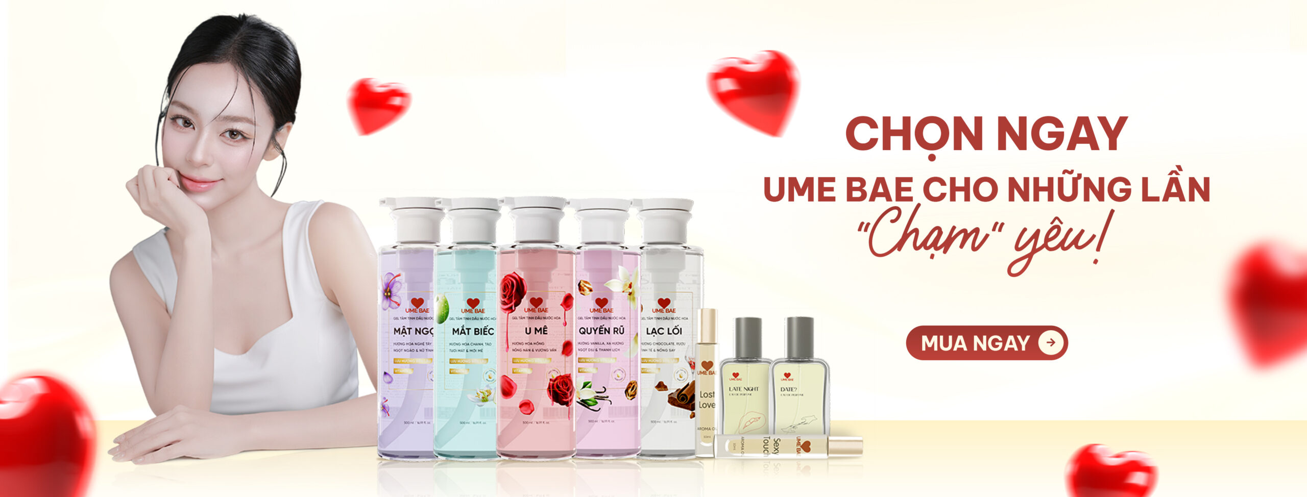Chúng tôi bắt đầu với các dòng sản phẩm Gel tắm tinh dầu, nước hoa và tinh dầu nước hoa – những mùi hương dịu nhẹ, gần gũi và dễ yêu. Bởi với Ume Bae, hương thơm không cần quá mạnh mẽ để nổi bật, mà chỉ cần đủ để khiến bạn thấy mình xinh đẹp hơn, yêu đời hơn, và đặc biệt – yêu chính bản thân mình hơn.